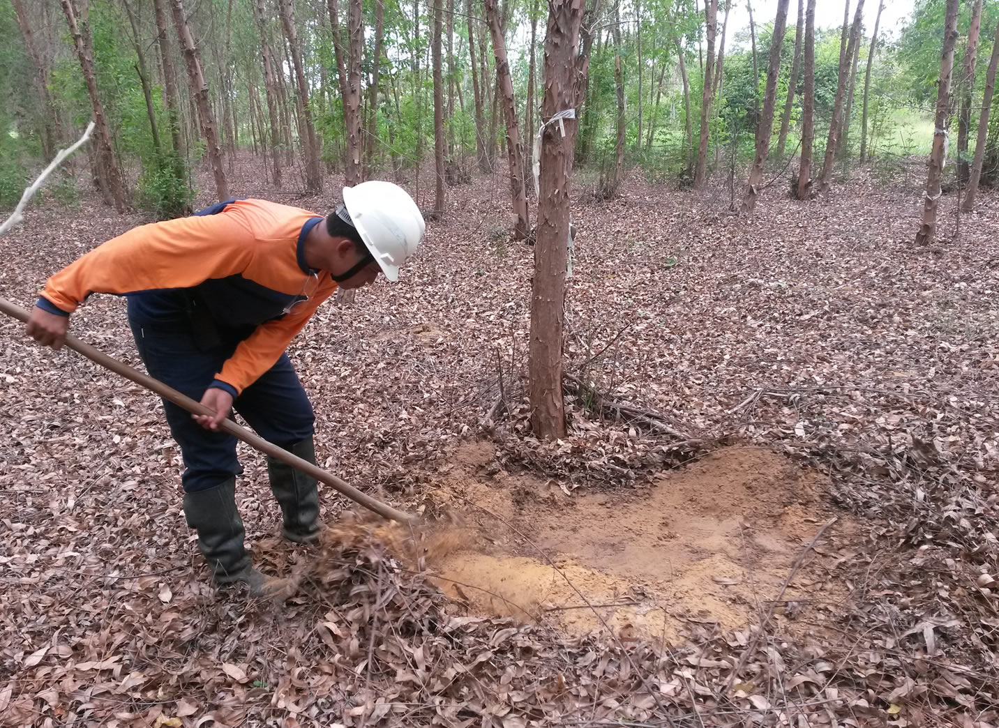 3) - Identificação, contagem e medição dos formigueiros nas parcelas, conforme procedimentos padrões da empresa